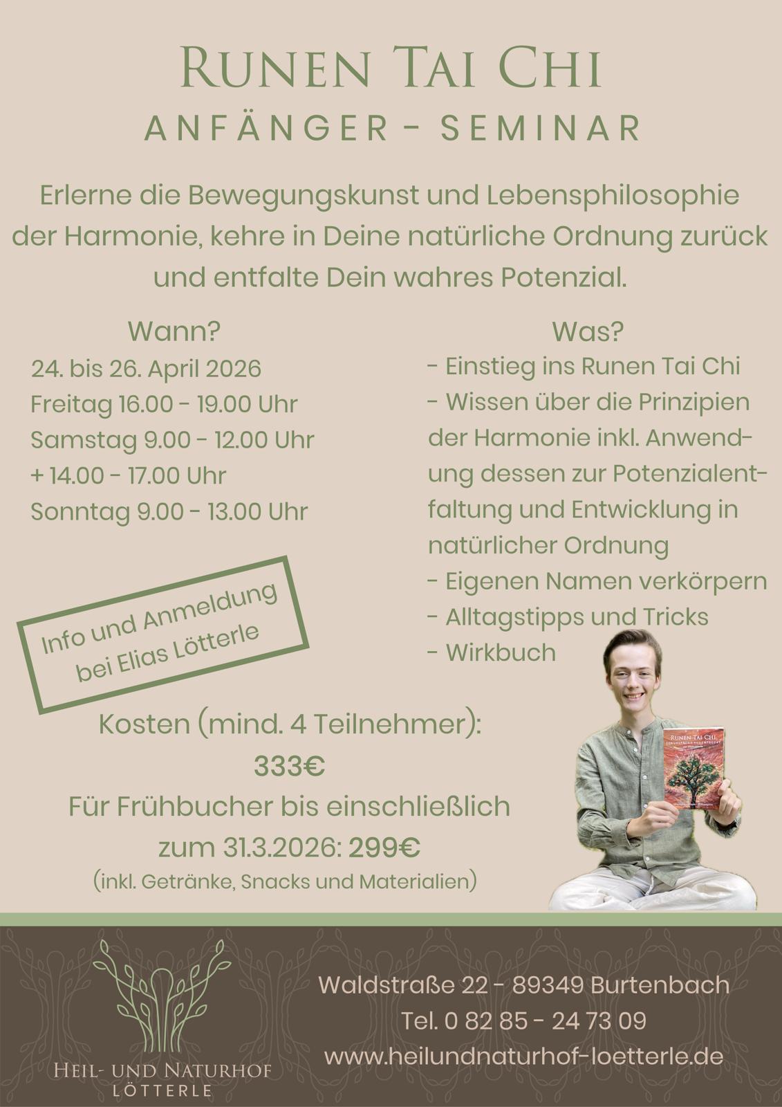 Jetzt ist es endlich soweit und nach vielen Stunden der Kreativität und des Schreibens, aber auch nach viel Justierarbeit und Entwicklung, hat Elias Lötterle sein erstes Buch, „Runen Tai Chi – Den Ursprung neu entdeckt“, veröffentlicht.